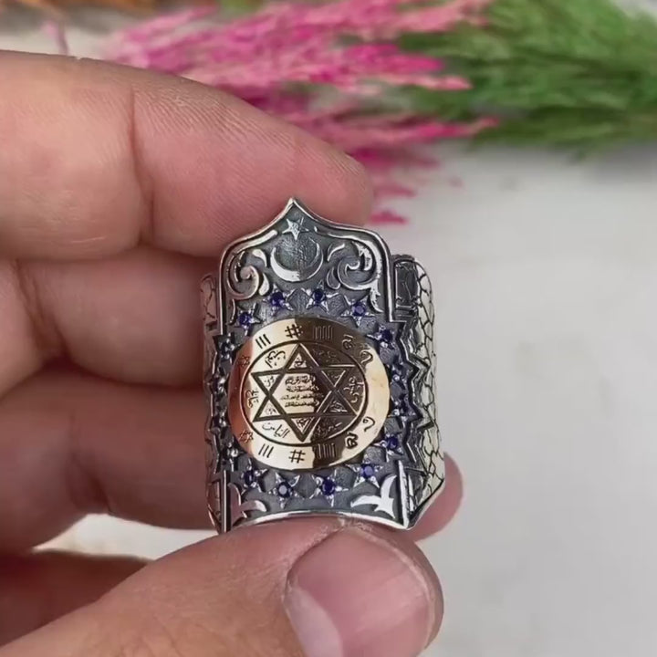 خاتم فضة رجالي مزين بنقوش دقيقة ومعاني روحانية، تصميم يجمع الفخامة والأناقة، مناسب للإطلالة اليومية أو كهدية مميزة.