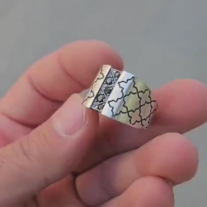 خاتم فضة رجالي عيار 925 مصمم بنقوش بزخرفات من الهندسة الاسلامية
