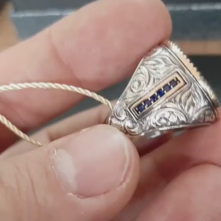 خاتم فضة 925 رجالي بنقش سورة الانشراح، تصميم اسلامي راقي يجمع بين الدقة والجمال الفني. هدية رائعة لكل رجل.