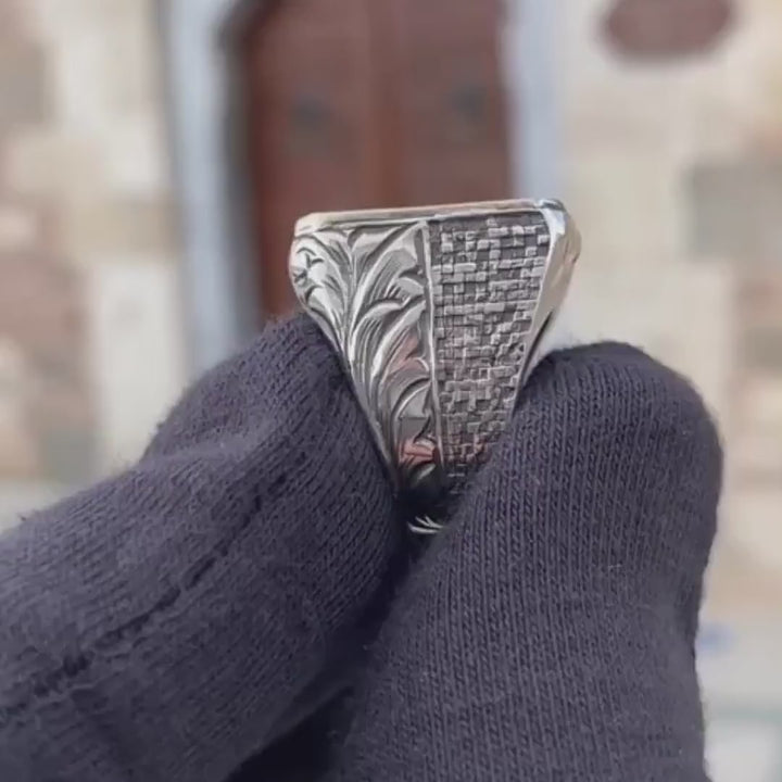 خاتم فضة رجالي 925 رجالي تصميم ميزان العدل، يجمع بين الأناقة والرمزية الروحية، مع إمكانية إضافة شعار، نقش، حرف أو رسالة شخصية لجعل الخاتم فريدًا، مصنوع من فضة عالية الجودة لتدوم سنوات طويلة، تصميم أنيق يناسب جميع الأساليب اليومية والرسمية، مثالي كهديّة مميزة لأحبائك مع الحفاظ على لمعان الفضة عبر العناية المناسبة.