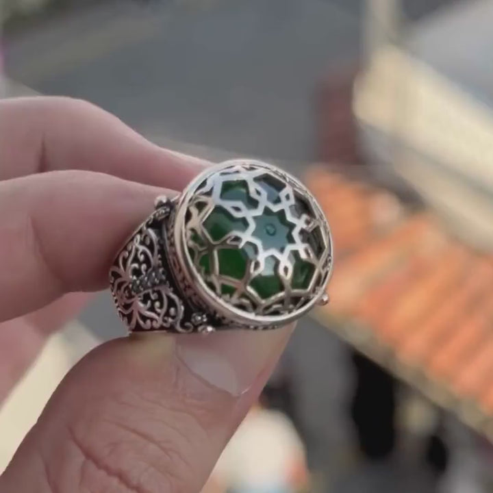 خاتم رجالي فاخر مصنوع من فضة عيار 925 بتصميم شبكي، يتميز بنقوش هندسية دقيقة محفورة يدويًا تمنح الخاتم مظهرًا عصريًا ومتفردًا. بفضل صناعته المتقنة ولمعانه الطبيعي، تصميمه المتين يجمع بين البساطة والفخامة ليصبح خيارًا مثاليًا لكل رجل يبحث عن التميز والذوق الرفيع في تفاصيله.