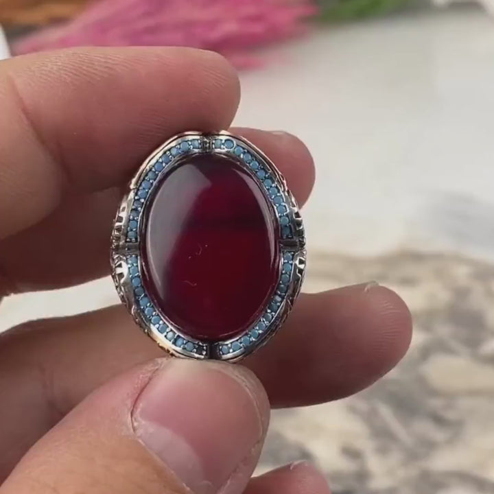 - حجر العنبر الأحمر الأصلي، يضيف قيمة وفخامة للخاتم.