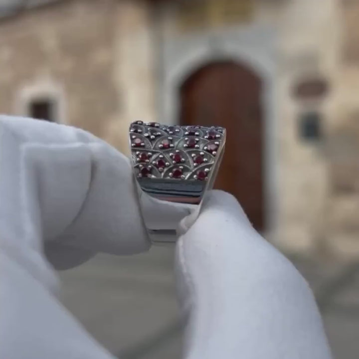 خاتم فضة رجالي 925 مرصع بأحجار مايكرو