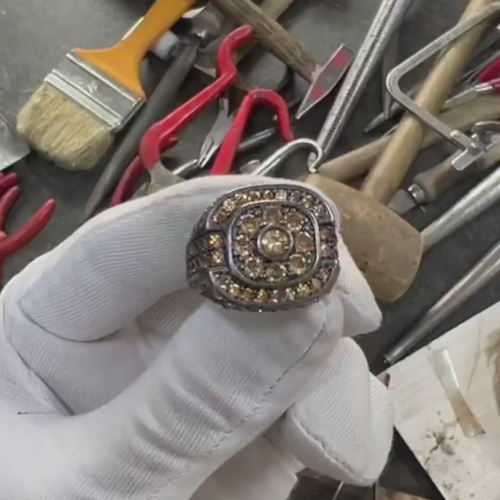 خاتم فضة رجالي 925 رجالي تصميم فاخر مزين بزركون متعدد الأحجام لتوفير بريق يشبه الألماس، تصميم أنيق وعصري يناسب المناسبات اليومية والخاصة، تصميم يركز على التوازن بين الجزء العلوي الكبير والزركون الأصغر على الجوانب، ويعتبر خيارًا رائعًا للهدايا المميزة.